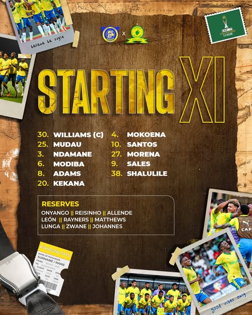 LUBUMBASHI, DRC — The “Yellow Machine” is primed and ready to conquer! Mamelodi Sundowns have officially announced a formidable starting XI for this afternoon’s TotalEnergies CAF Champions League showdown against FC Saint-Éloi Lupopo.
